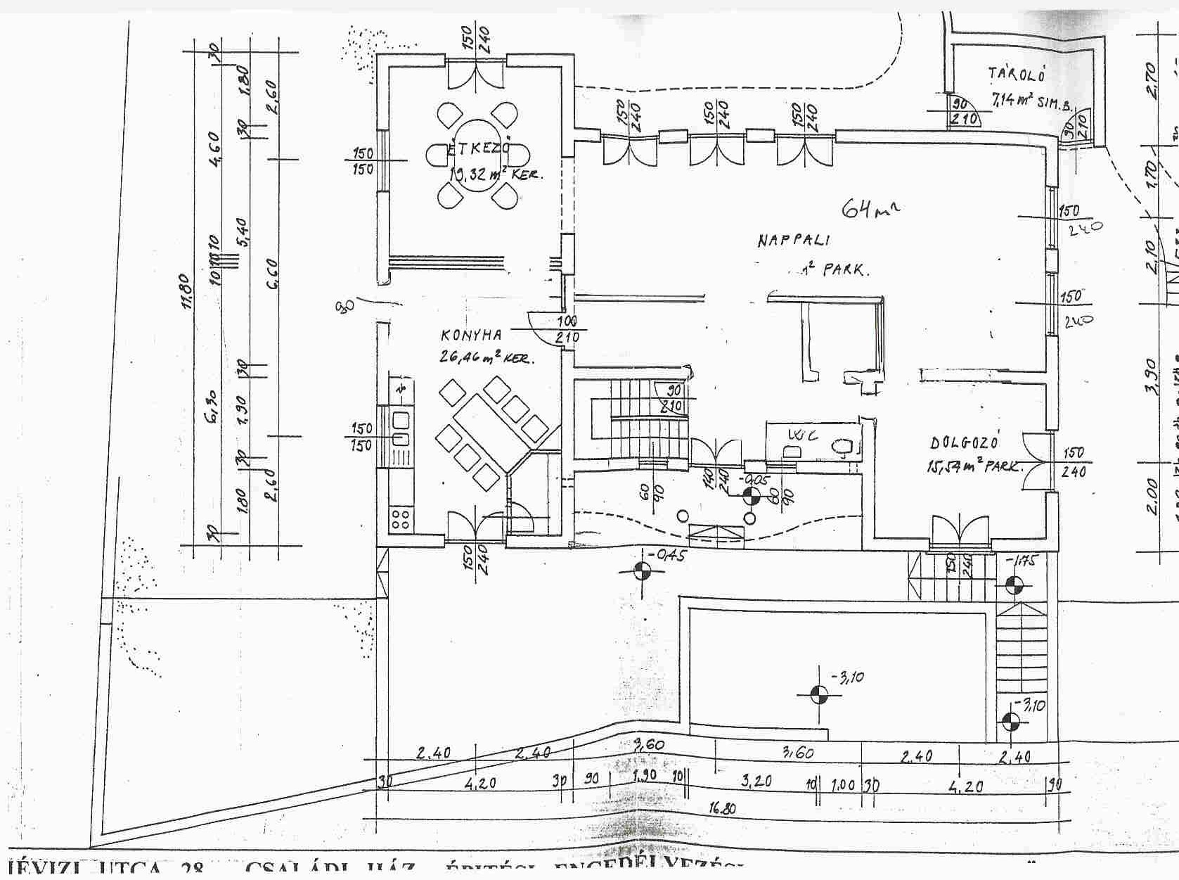 A földszinten a nappali, konyha, étkező, dolgozó szoba - valamennyi kertkapcsolatos.