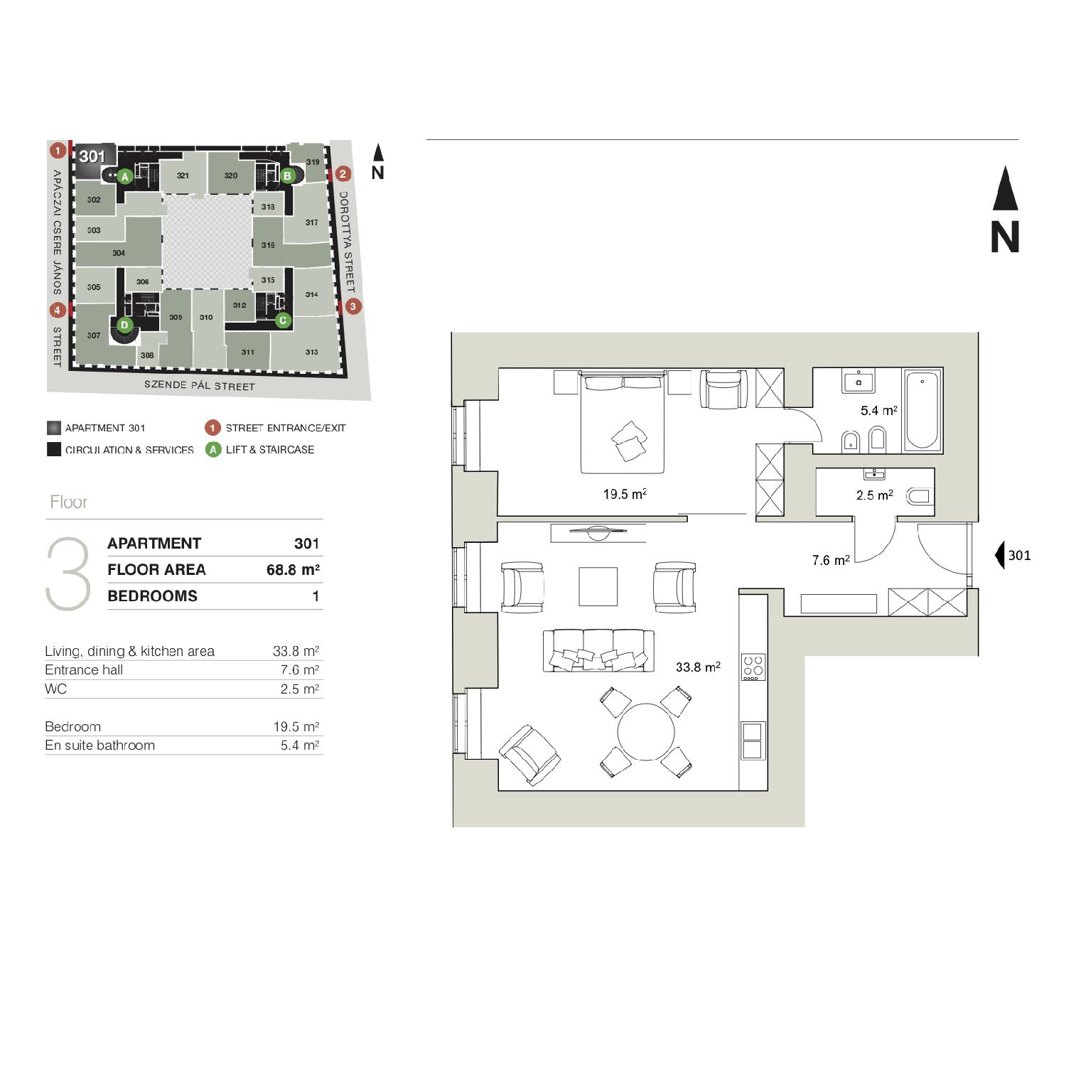 A lakás bútorozott, kialakítása a legmodernebb műszaki és hőszigetelési követelmények szerint készült: három rétegű nyílászárók, riasztó, kiváló minőségű burkolatok, szaniterek, modern központi fűtés és légkondicionálás.