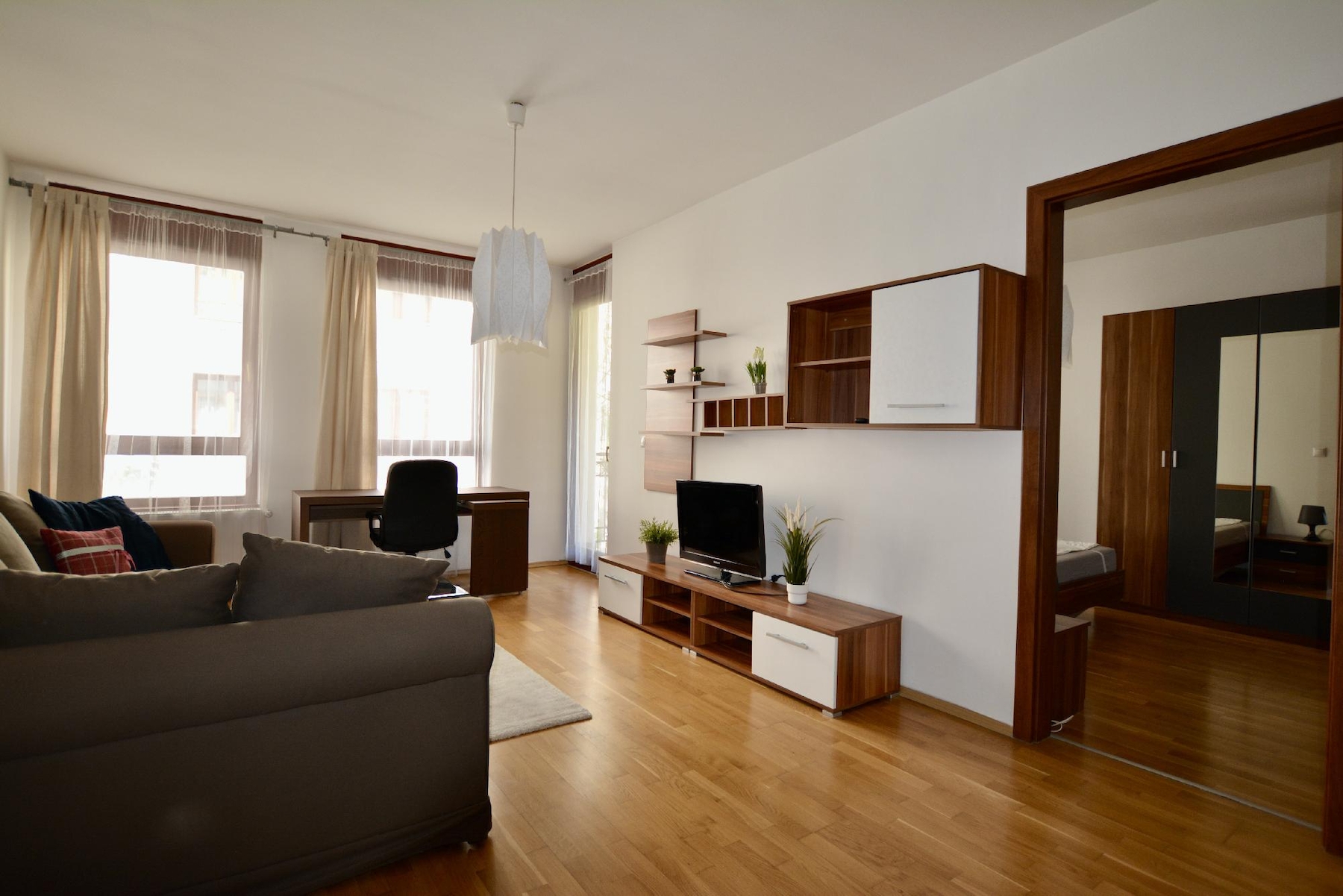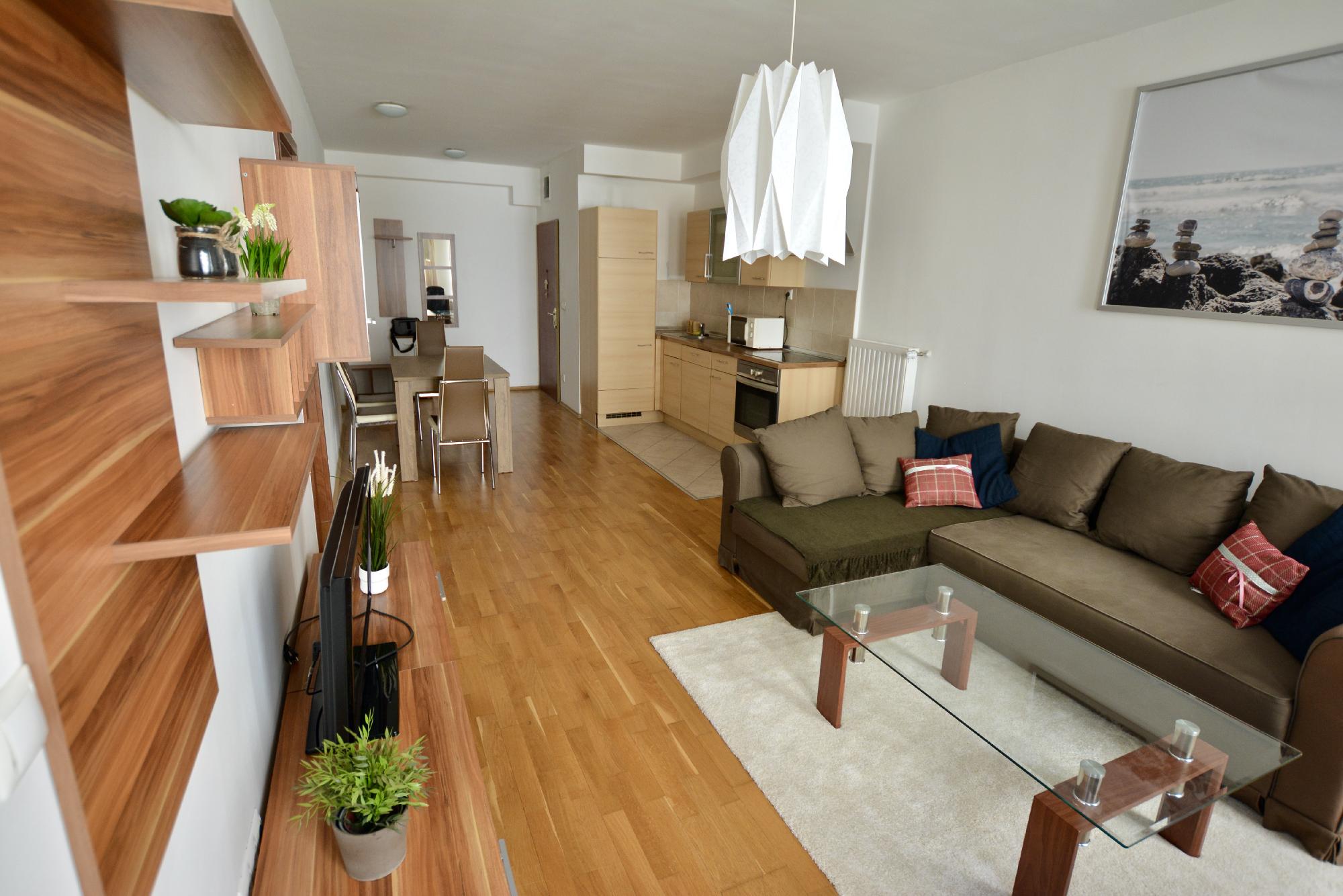 Az ingatlan 59 m2-ből áll, egy hálószoba, nappali, gépesített konyha és kádas fürdőszoba tartozik hozzá.