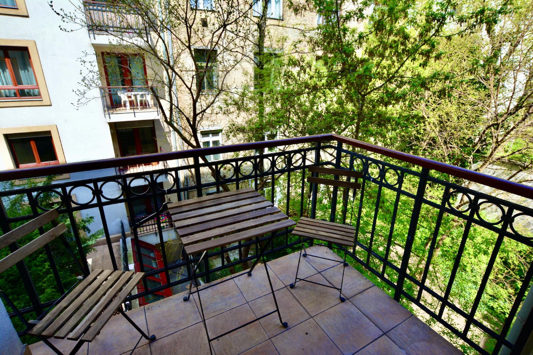 A jól karbantartott épületben 0-24órás portaszolgálat működik, valamint egy közös kert is elérhető az udvarban. Egy fitness terem található a házban, ami a bérlők számára ingyenes!