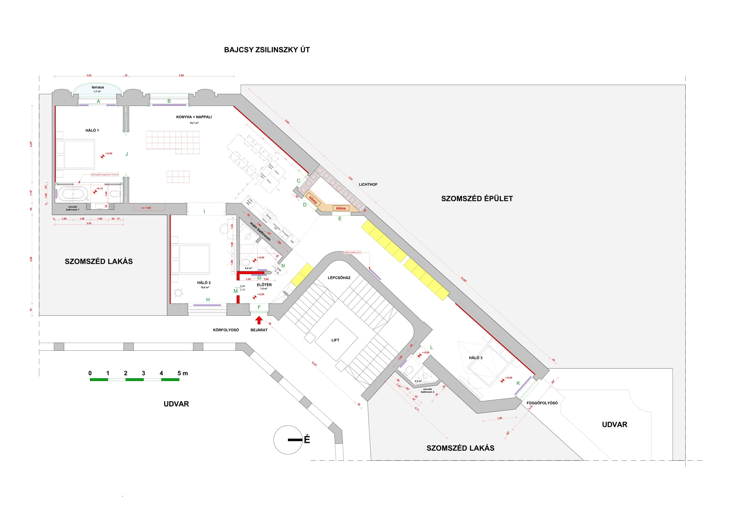 Close to the Basilica and Liberty Square, on the 2nd floor of a classic building in beautiful condition, this beautifully renovated and furnished property of 152 m2 + 2 m2 balcony consists of 3 bedrooms and 3 bathrooms. The main open plan living room has a street orientation and the guest bedrooms overlook the inner courtyard.