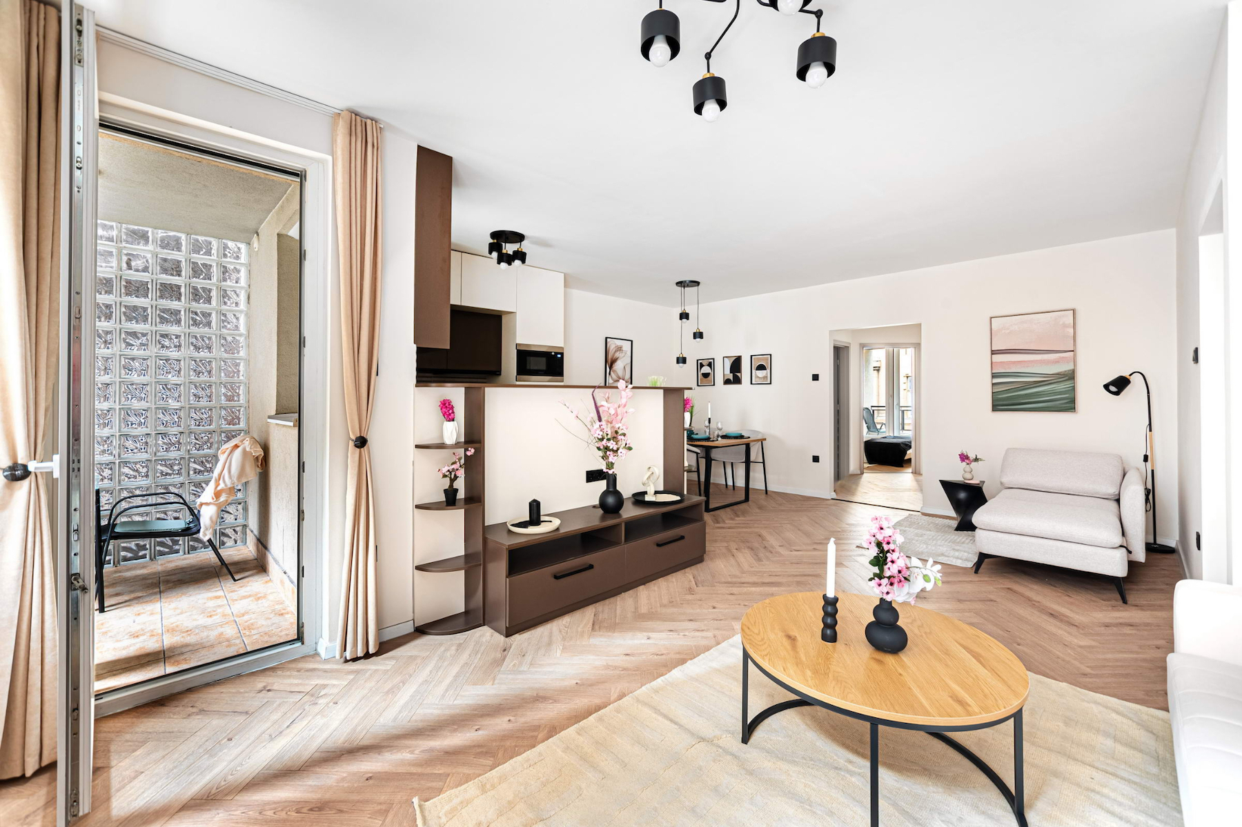 The 69 m², 3-room, 2-balcony home comes with a valid Airbnb license operated through a management company, allowing for immediate short-term rental income.