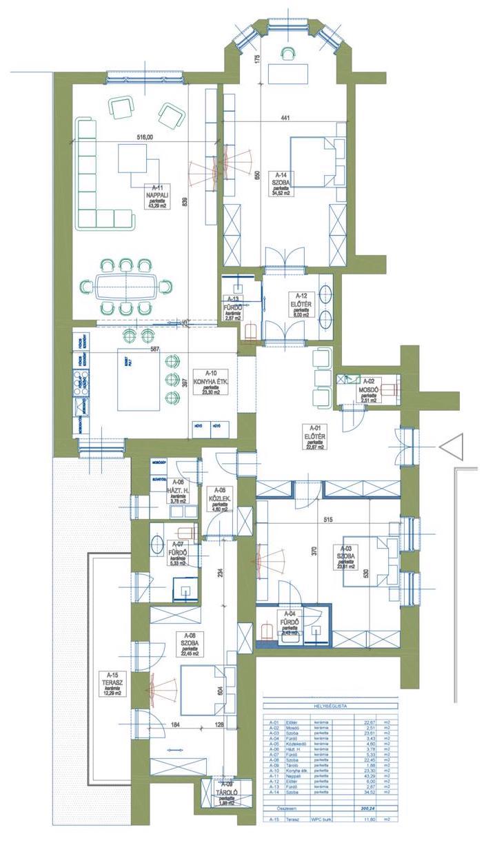 The property has two street rooms, a living room, three bedrooms and two bathrooms, which are equipped with high-quality equipment. The exclusive Arclinea kitchen, Miele household appliances and Roche Bobois bed represent outstanding quality. Joli dining tables and chairs and Armet bar stools reinforce the sense of luxury.