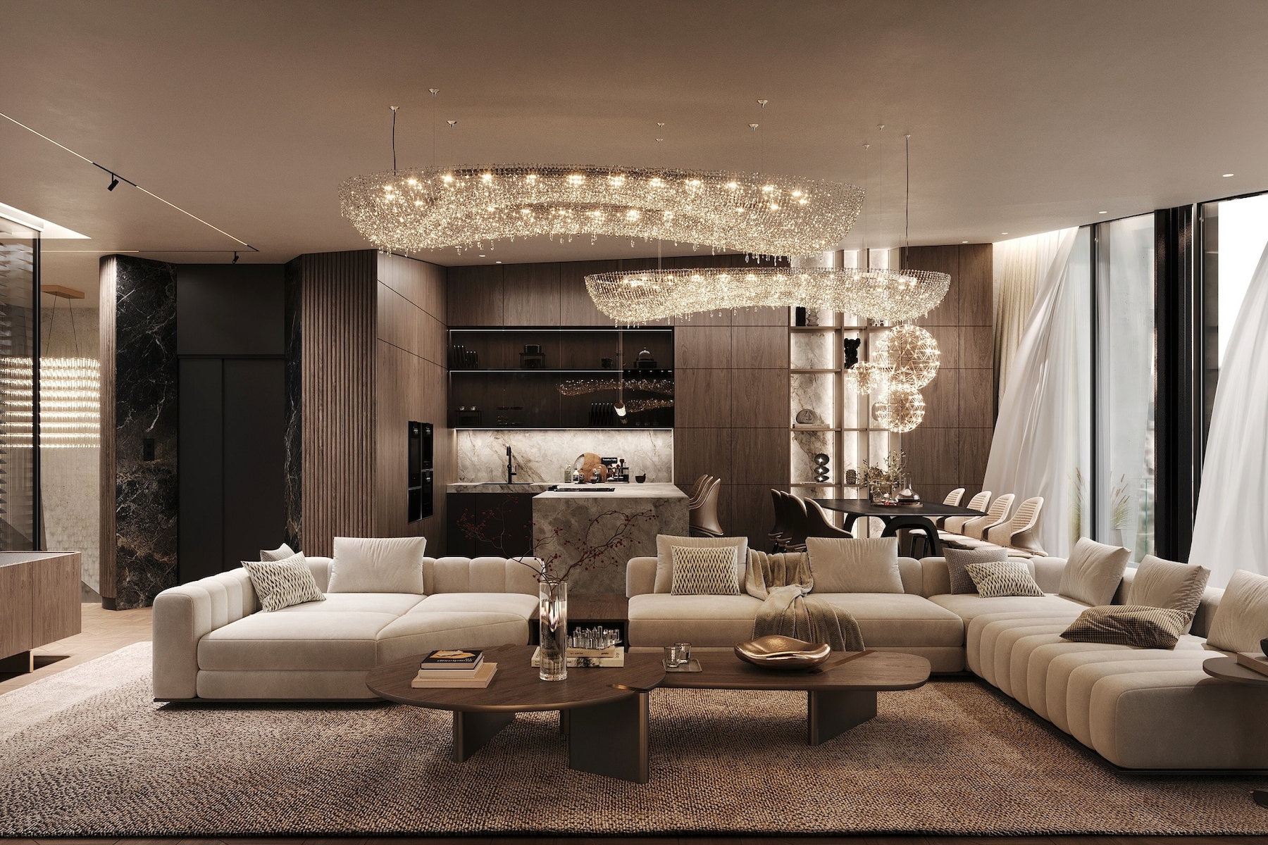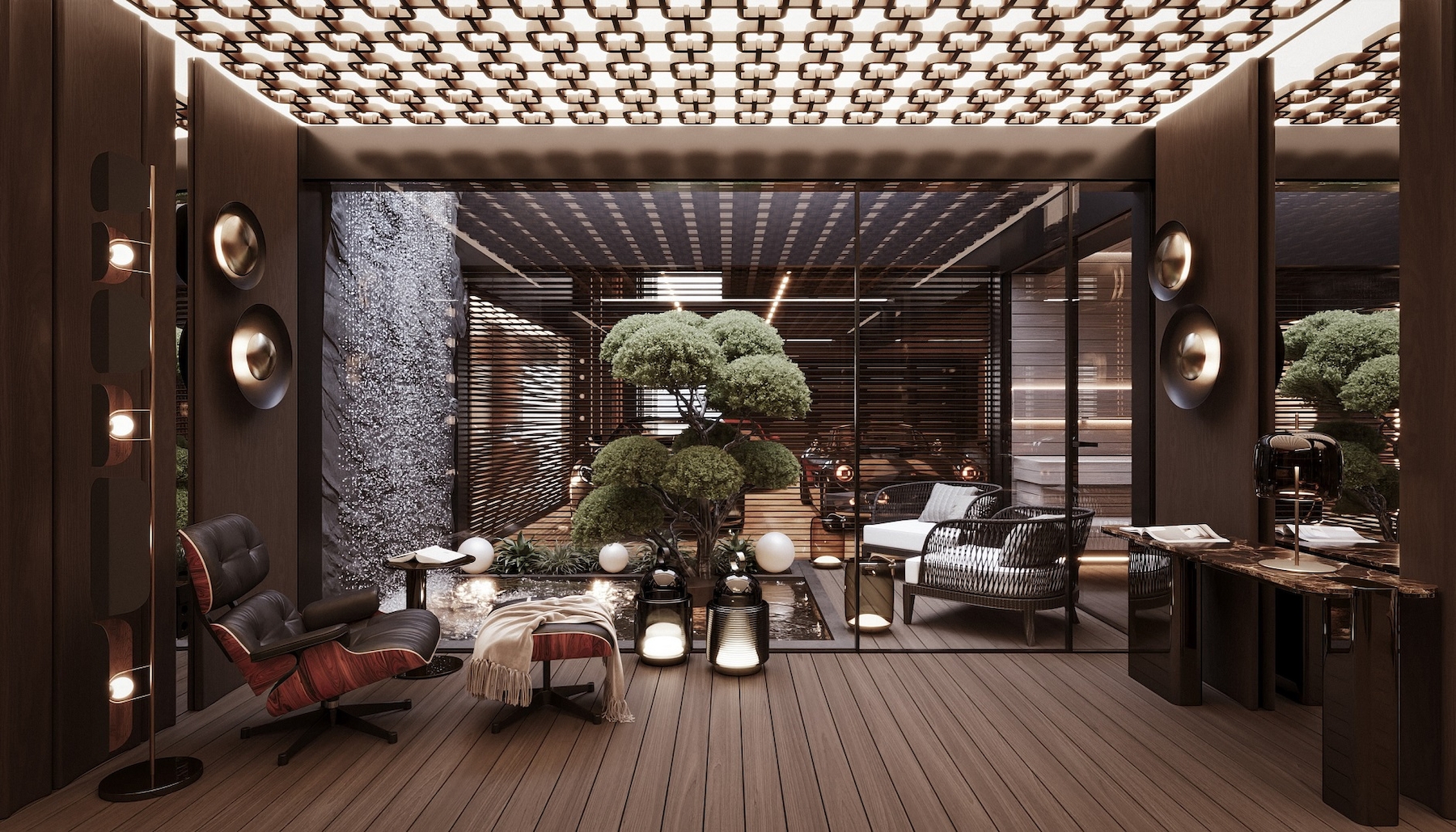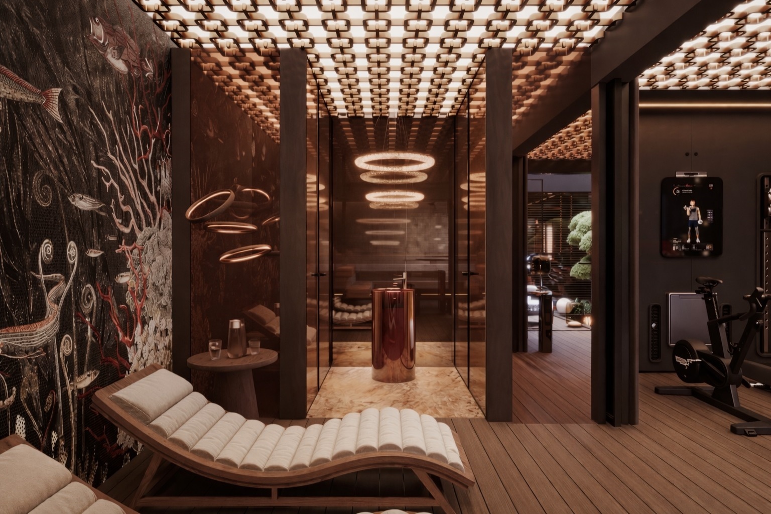 A pinceszinten kapott helyet az ötállásos mélygarázs, a wellness- és fitnessrészleg, a többfunkciós borozó és szivarszoba, valamint egy átriumos, természetes fénnyel megvilágított belső kert, amely különleges atmoszférát teremt.