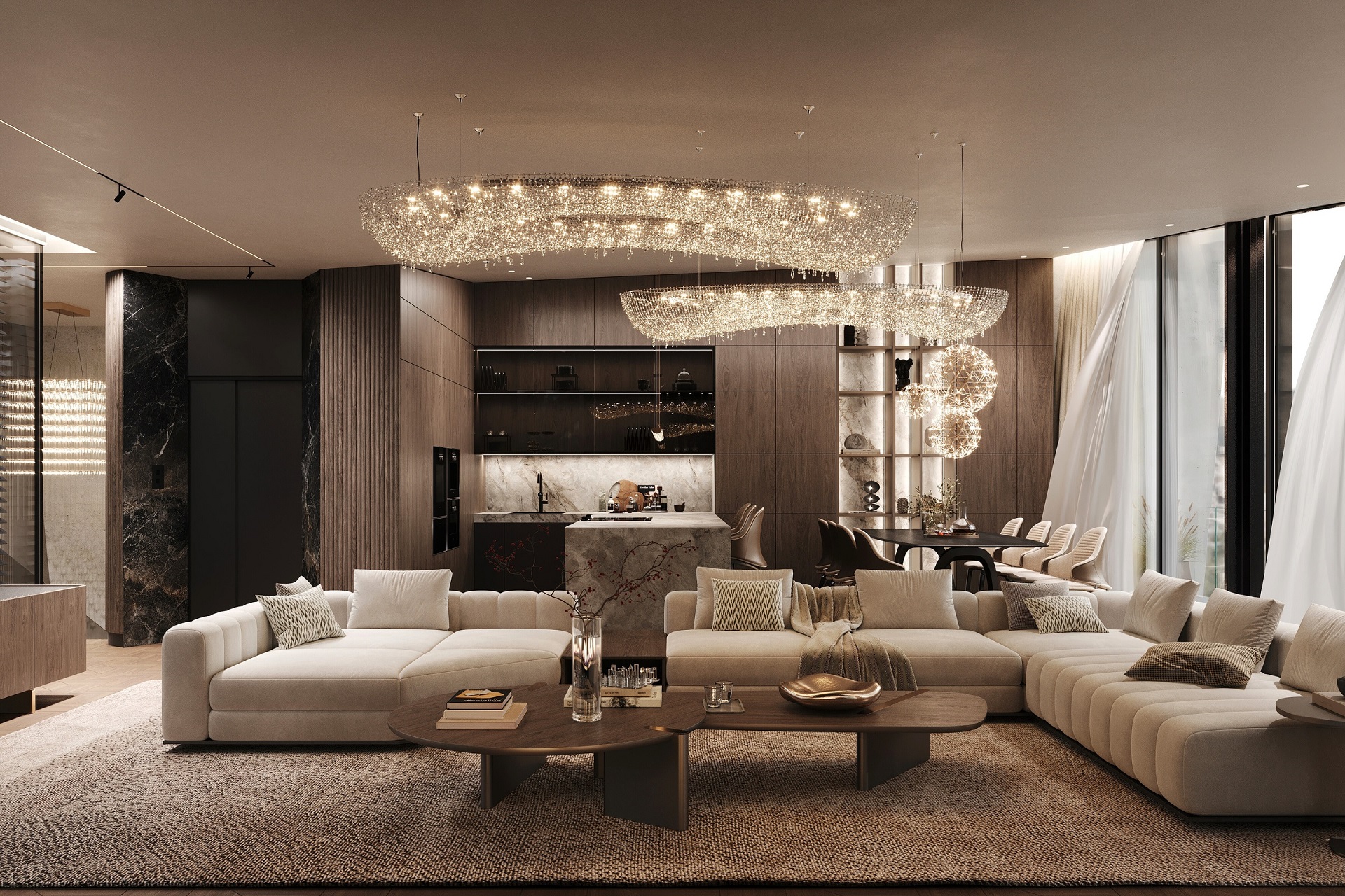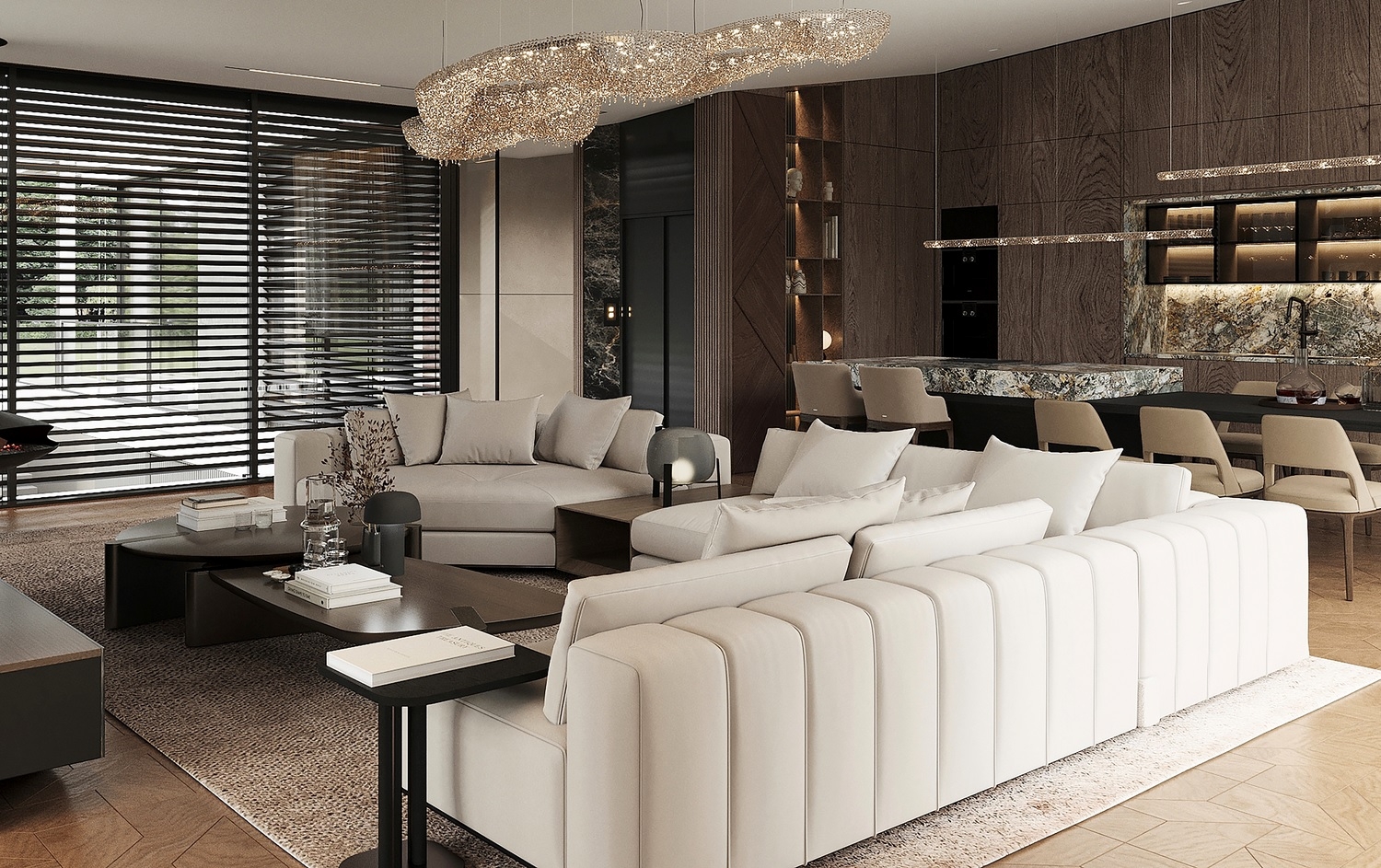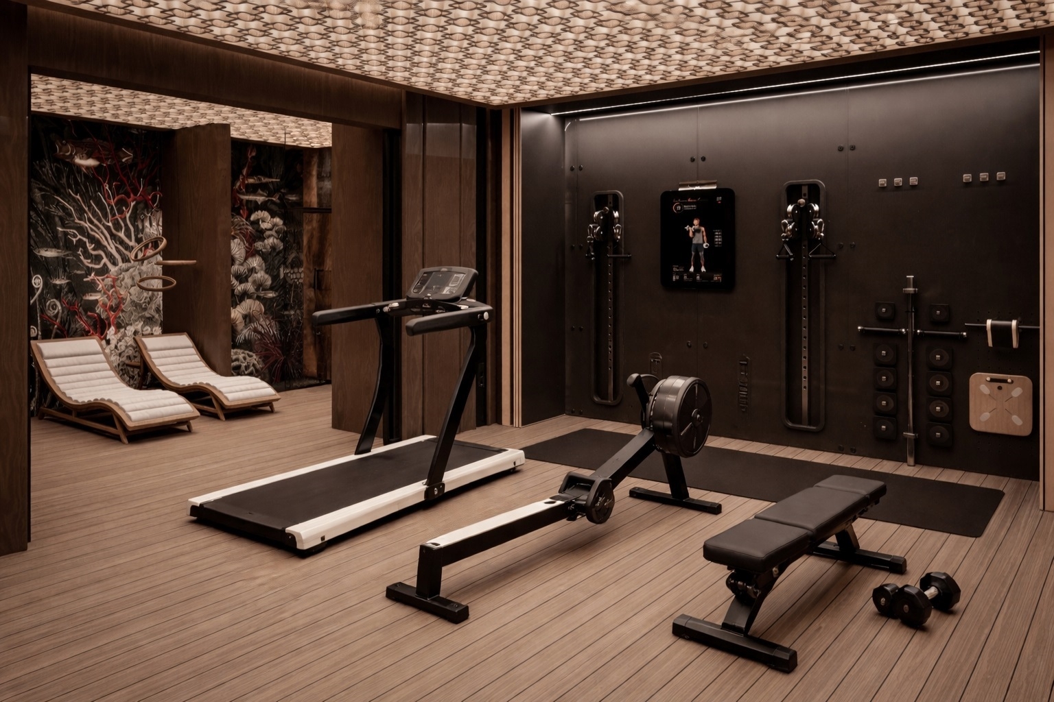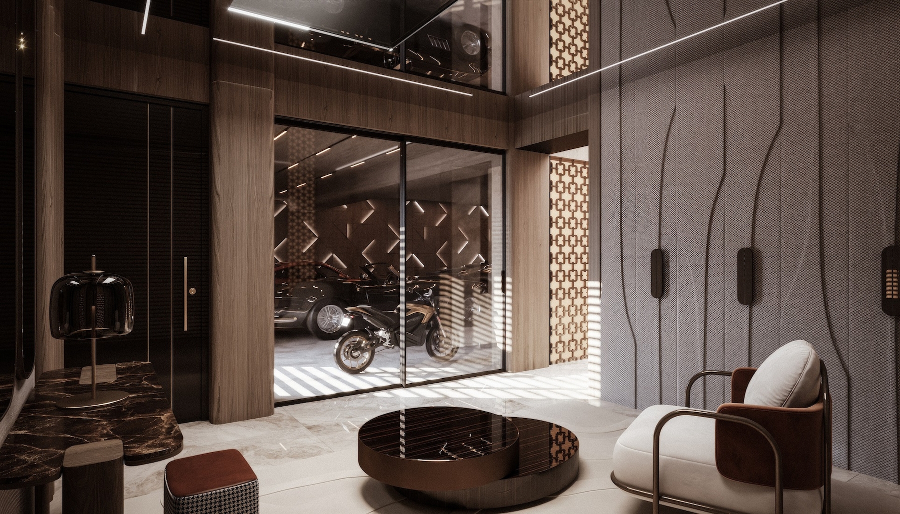 A pinceszinten kapott helyet az ötállásos mélygarázs, a wellness- és fitnessrészleg, a többfunkciós borozó és szivarszoba, valamint egy átriumos, ter