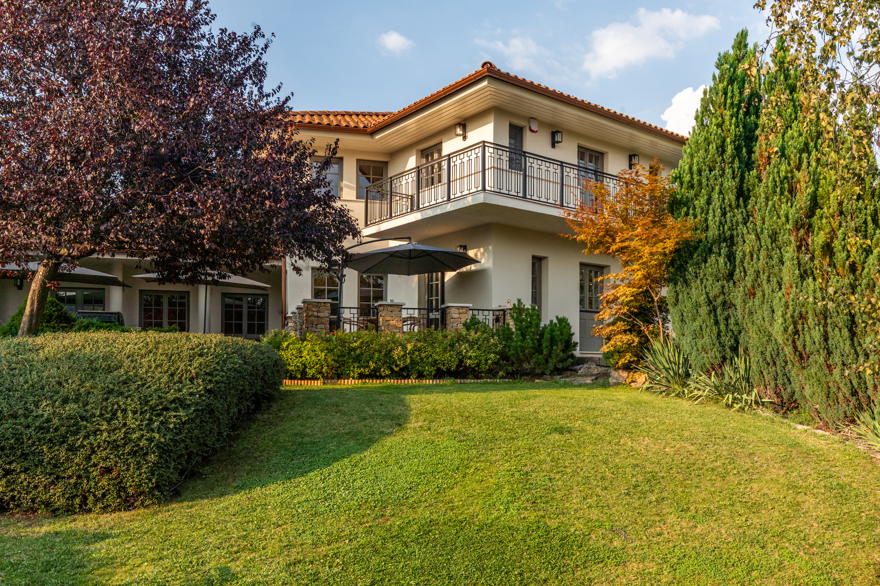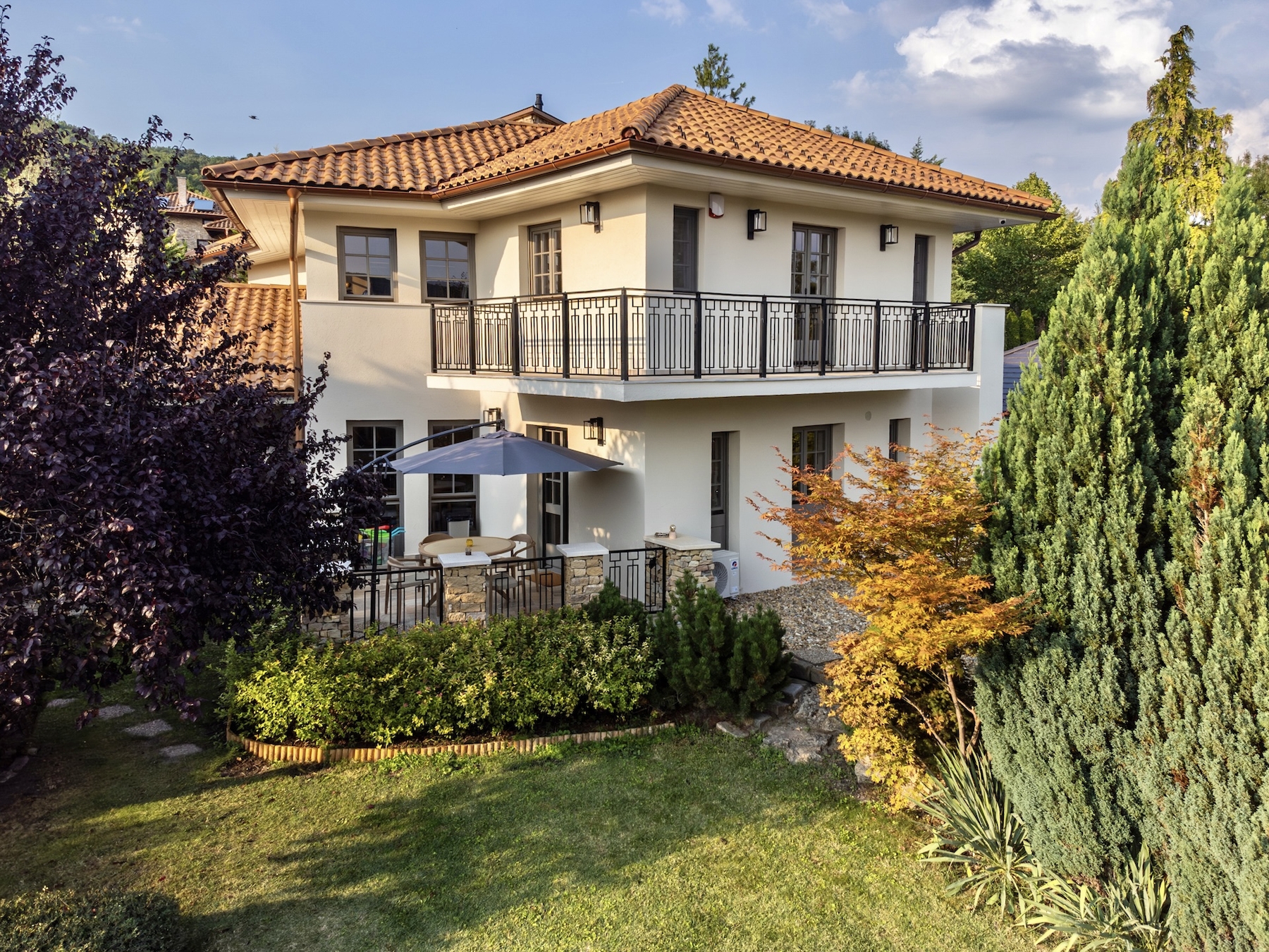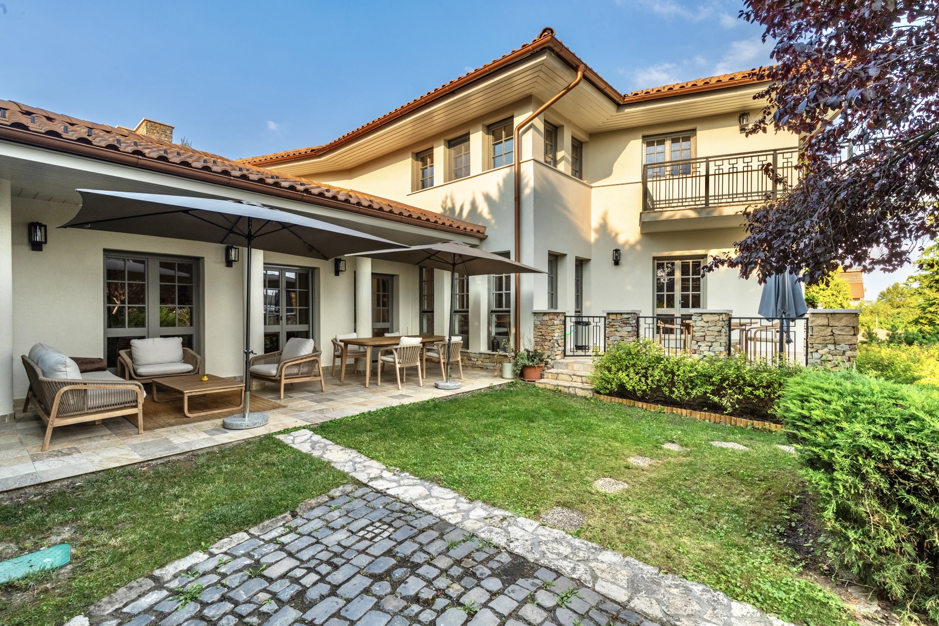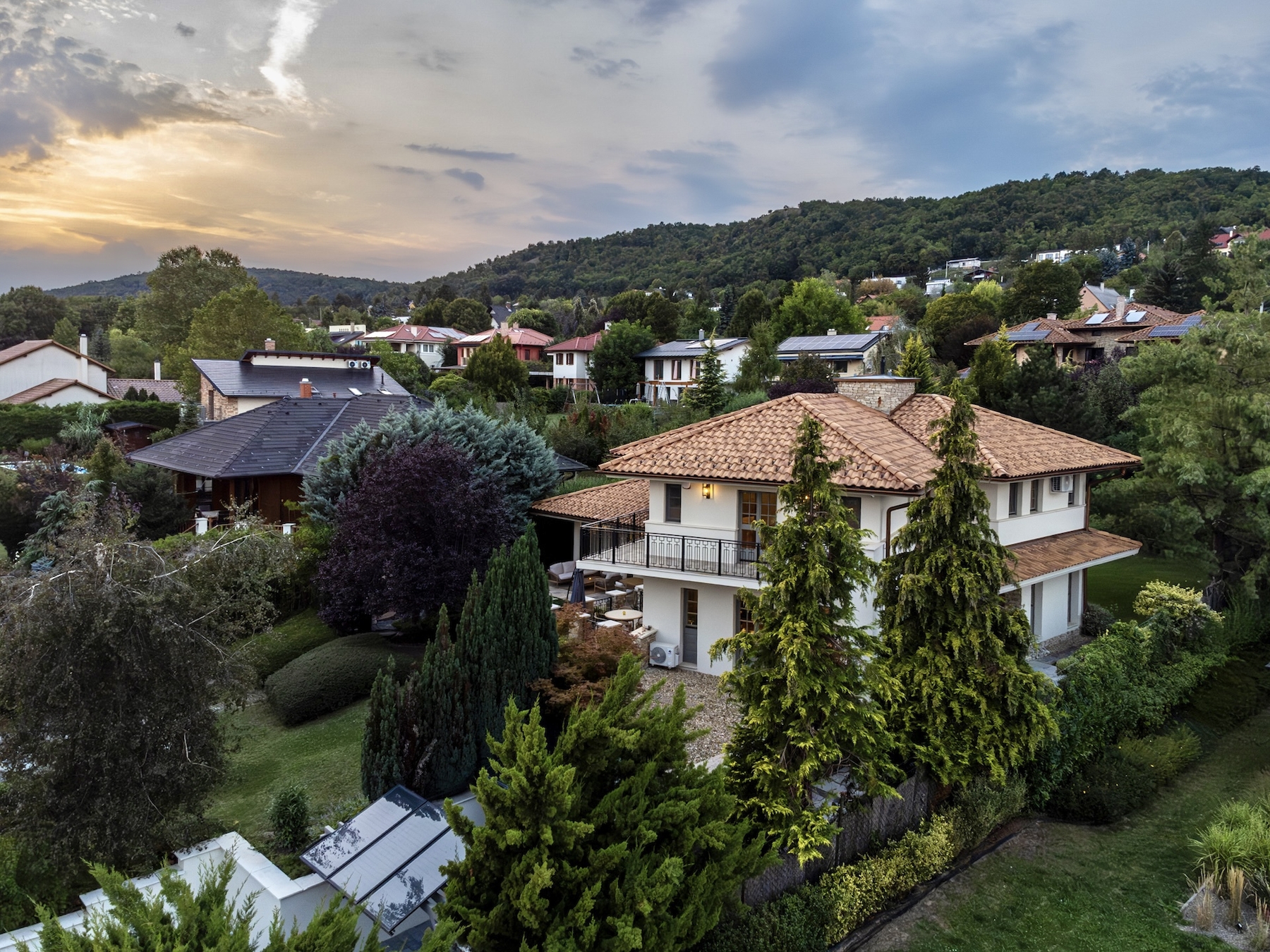 Nagykovácsi egyik legkeresettebb, csendes és exkluzív részén kínálunk megvételre egy rendkívül privát, mediterrán hangulatú családi villát, amely 2025-ben teljes körű, prémium minőségű felújításon esett át.