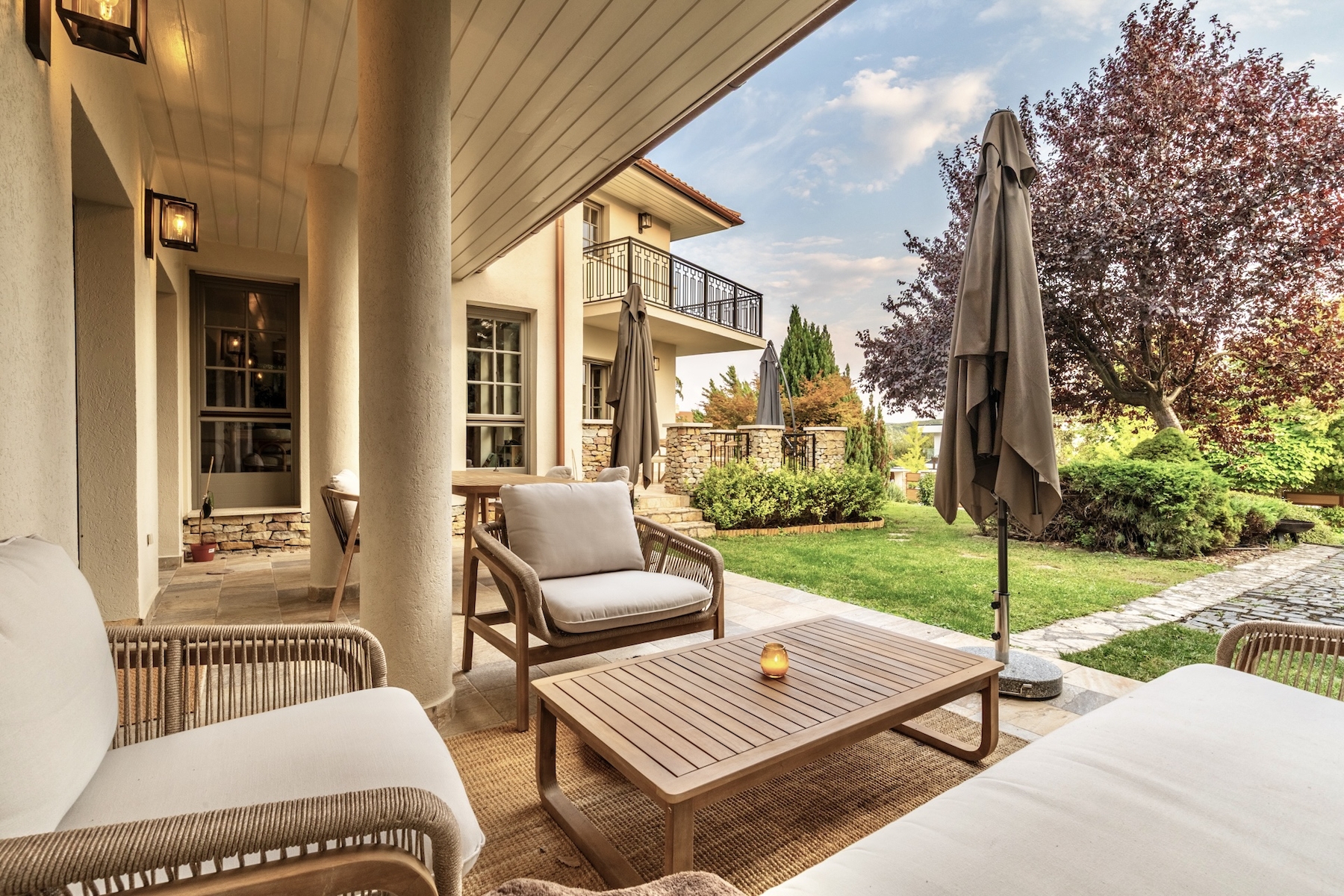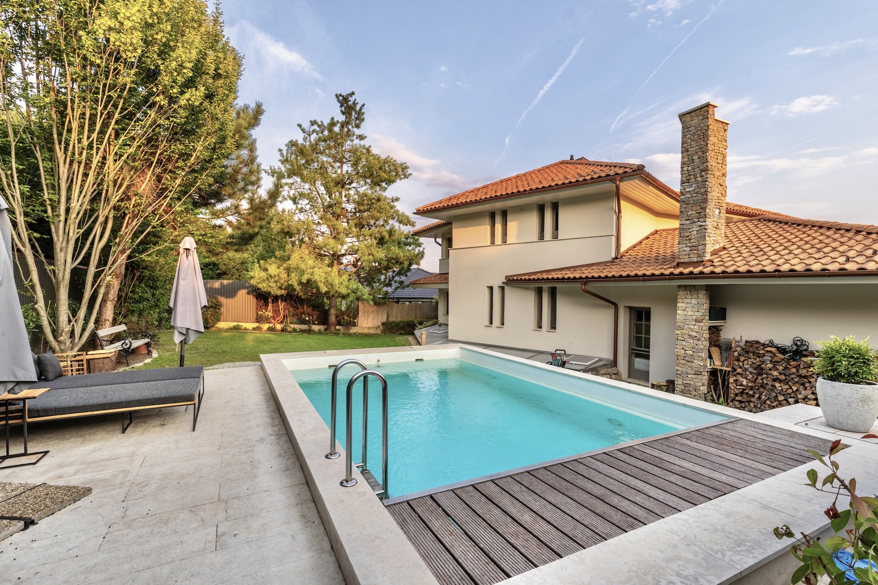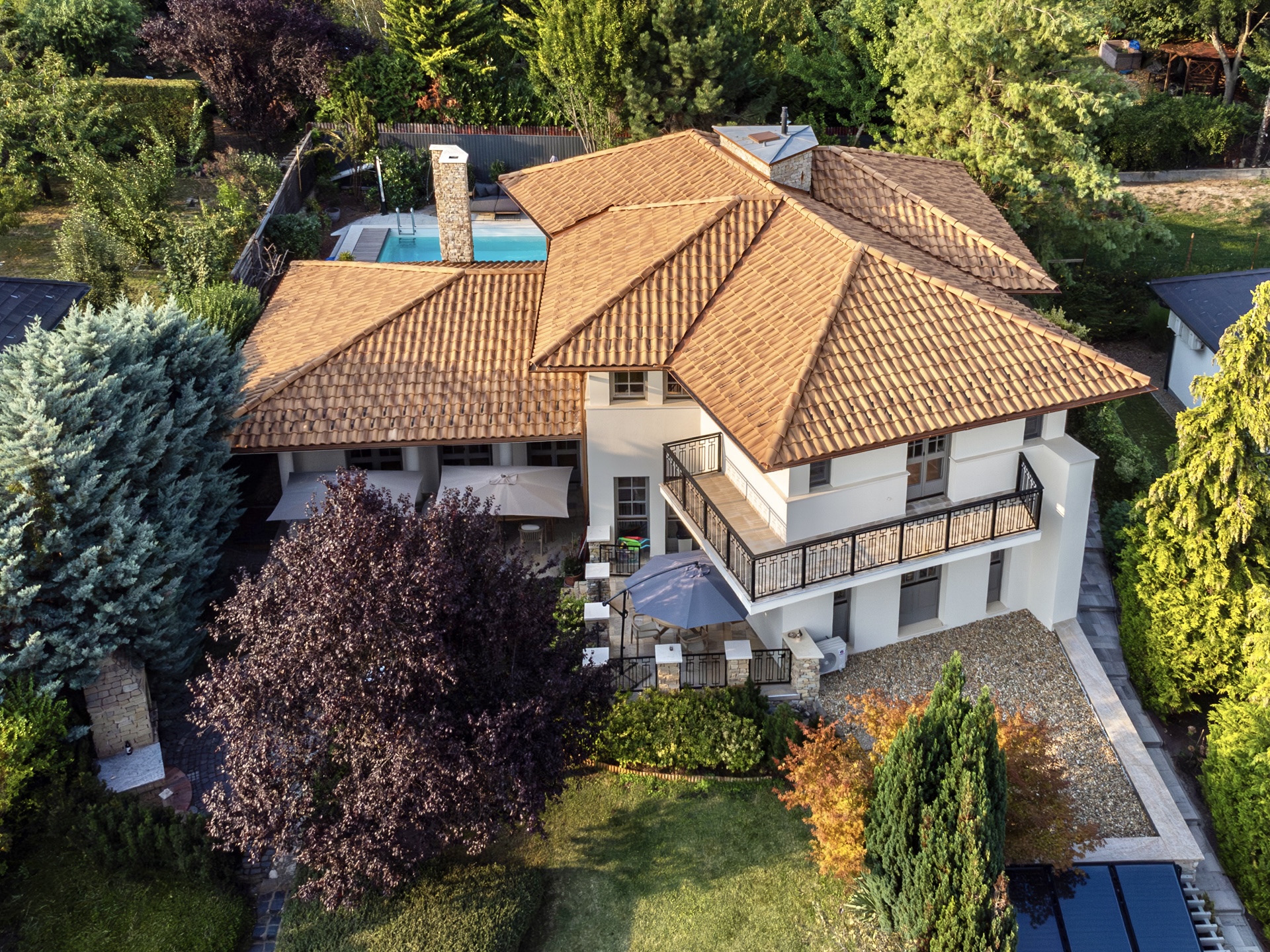 Az ingatlant varázslatos, intim kert öleli körbe, amely tökéletes helyszíne a pihenésnek és a társasági életnek. A kert ékköve a fűthető kültéri medence, amely egész szezonban élvezhető.
