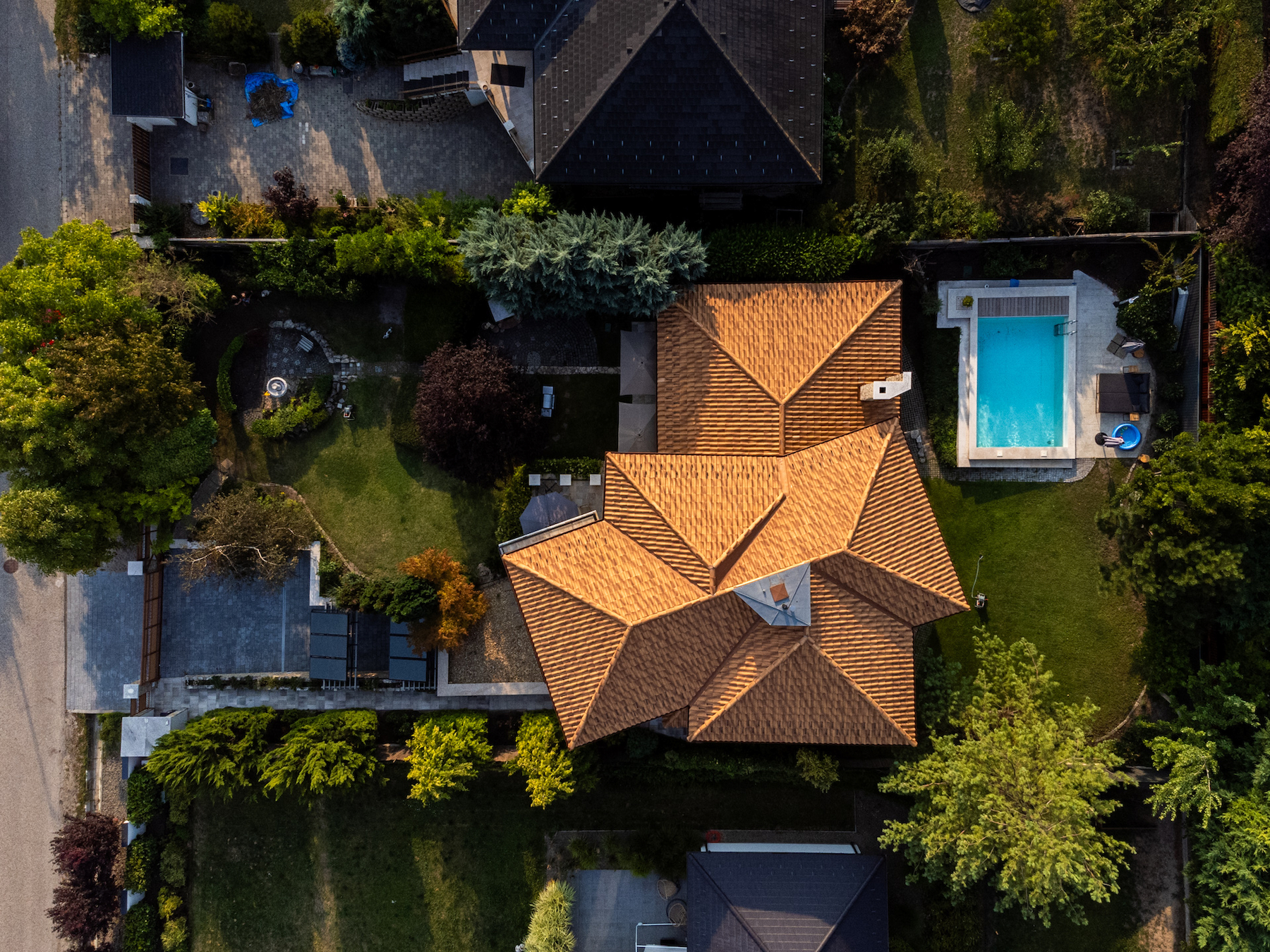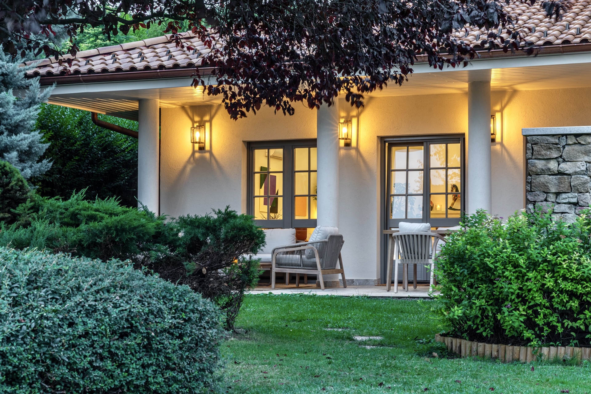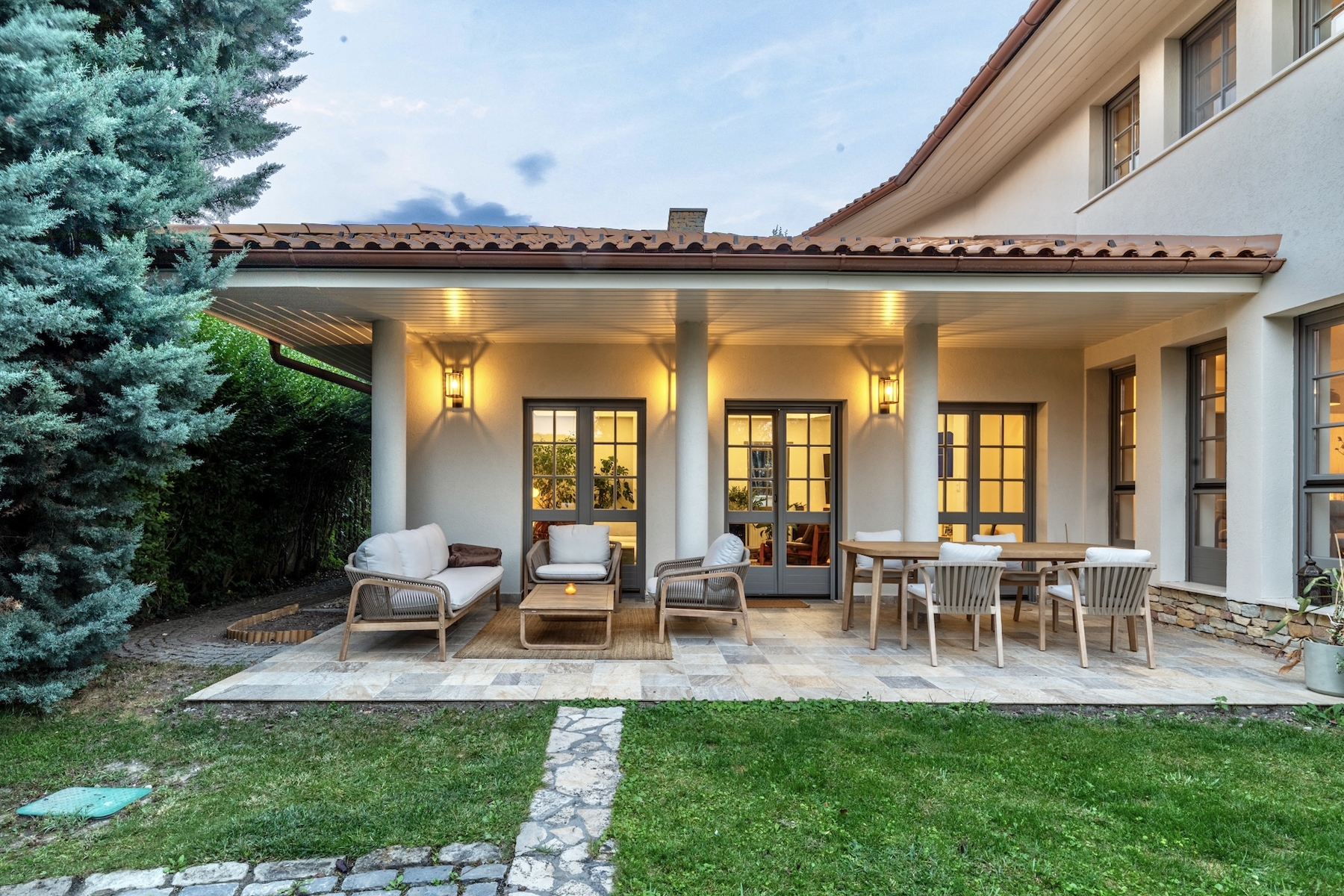 Az ingatlant varázslatos, intim kert öleli körbe, amely tökéletes helyszíne a pihenésnek és a társasági életnek. A kert ékköve a fűthető kültéri medence, amely egész szezonban élvezhető.