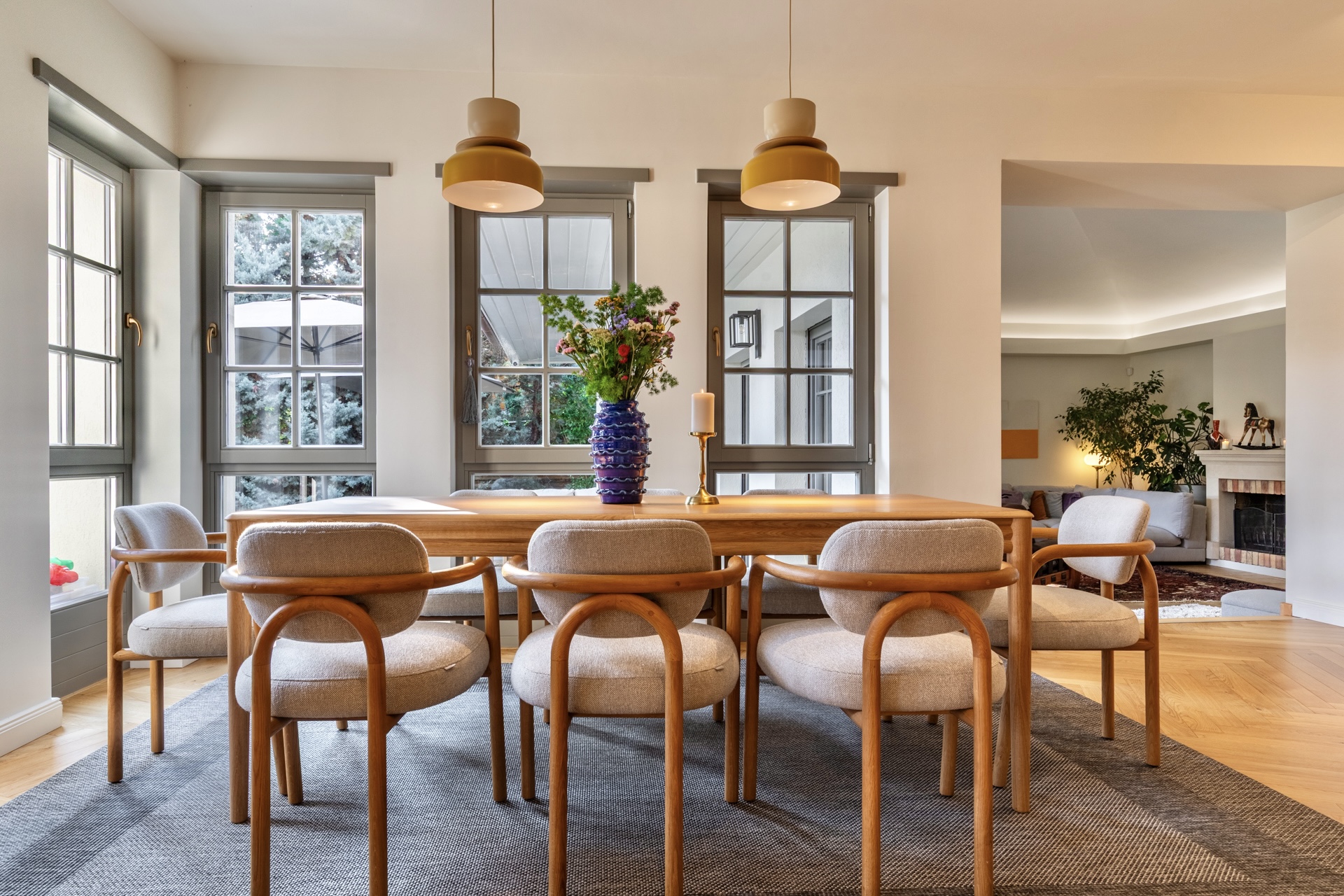 A ház kialakítása ideális mindennapi életre és reprezentatív vendégfogadásra is. A nagy üvegfelületeknek és a teraszkapcsolatoknak köszönhetően a belső terek szinte egybeolvadnak a kerttel, miközben a teljes intimitás és nyugalom végig megmarad.