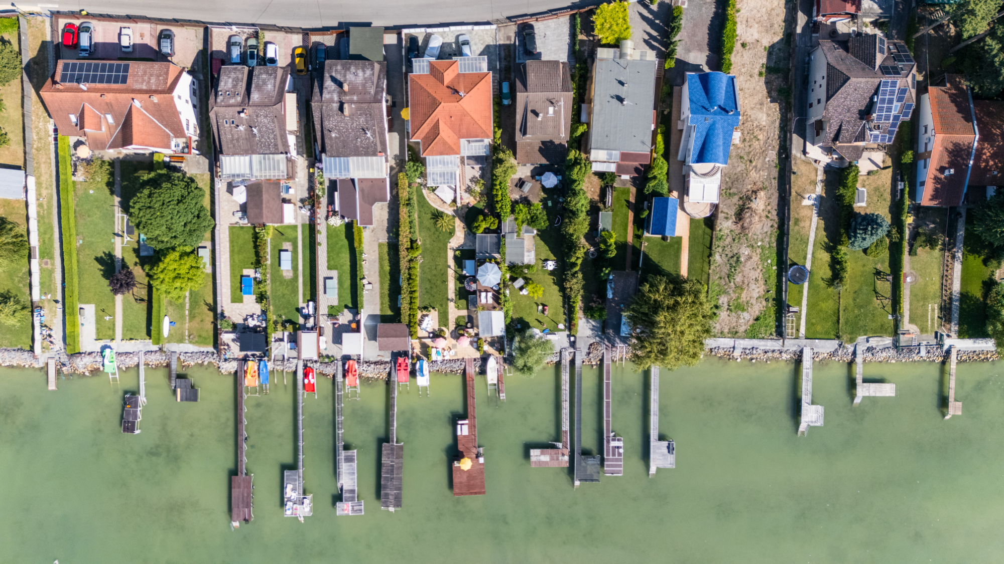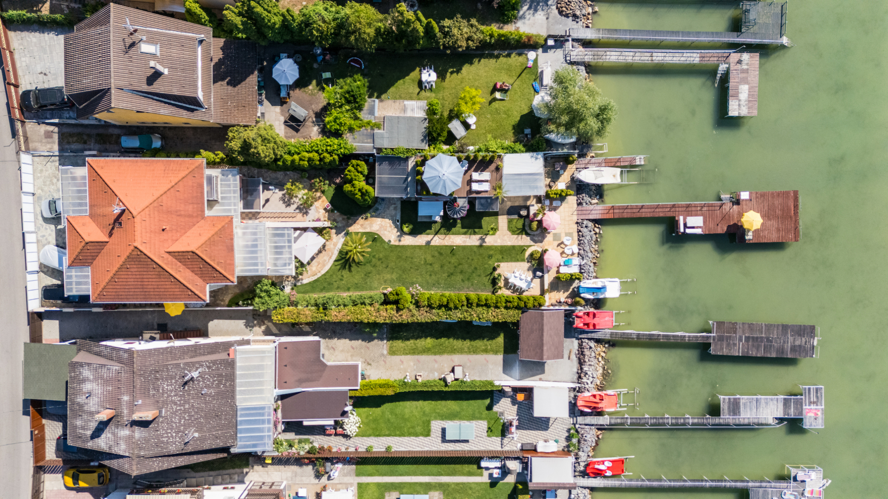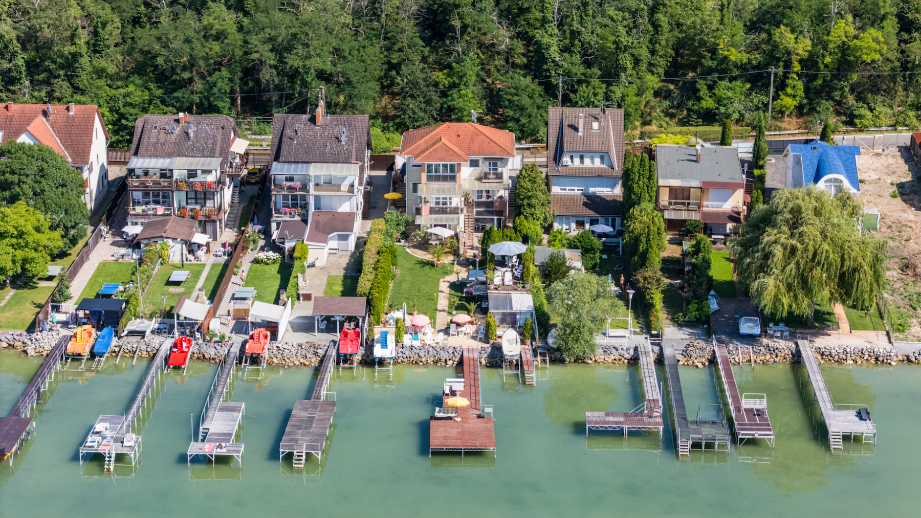 - Közvetlen vízparti elhelyezkedés – 70 m²-es saját stég
