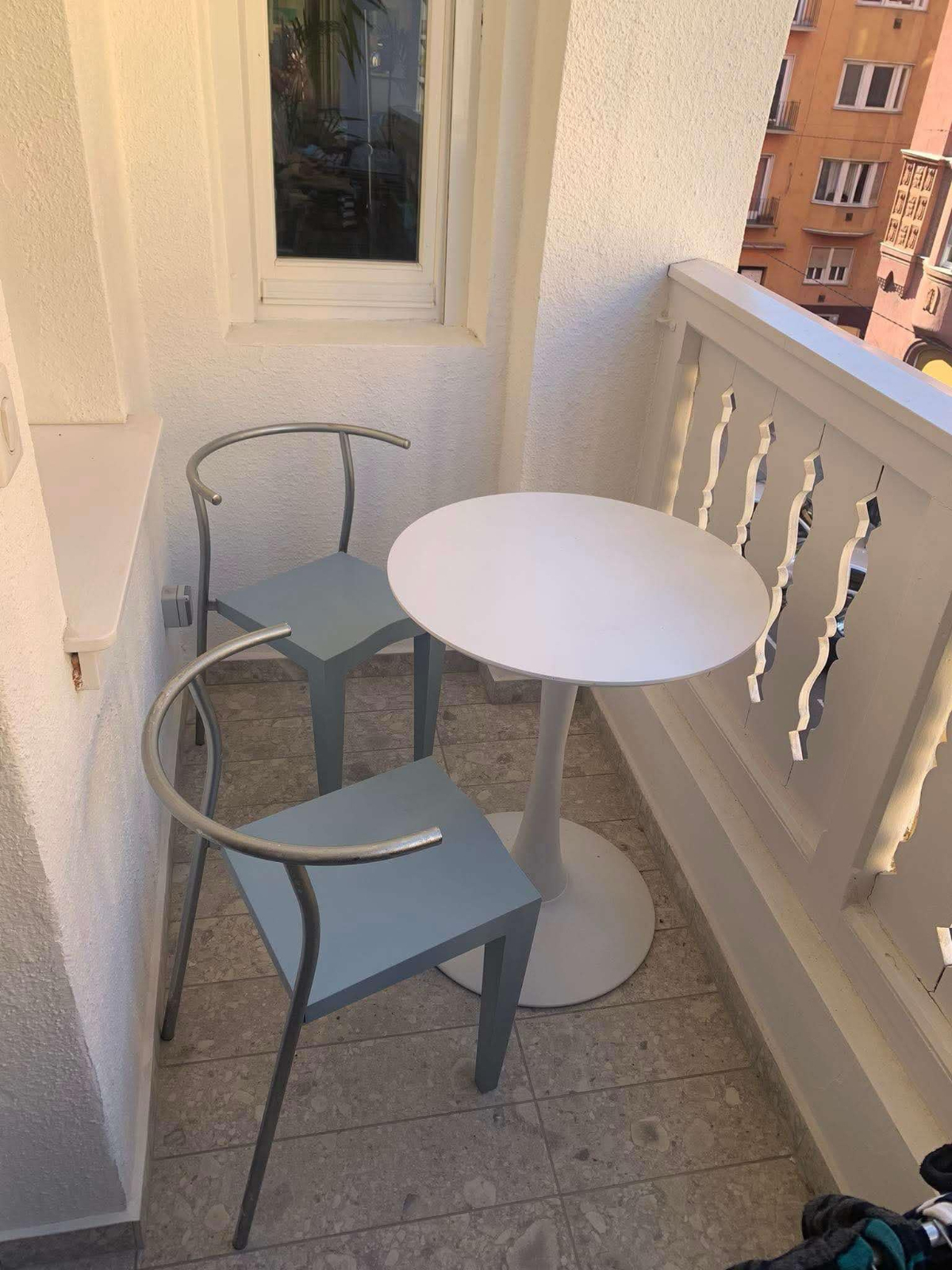 A 4 m²-es terasz egy szép, karakteres épületre néz, ideális helyszíne egy nyugodt reggeli kávénak vagy egy esti pihenésnek. Az utca az idei nyáron teljes megújuláson esett át, új fákkal és rendezett környezettel, így a lakás az utca egyik legszebb, legbarátságosabb részén helyezkedik el.