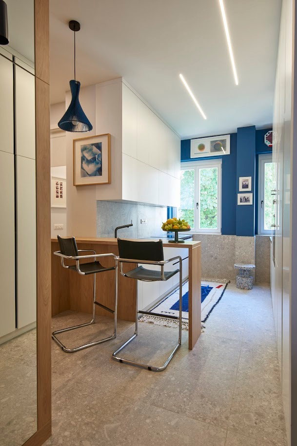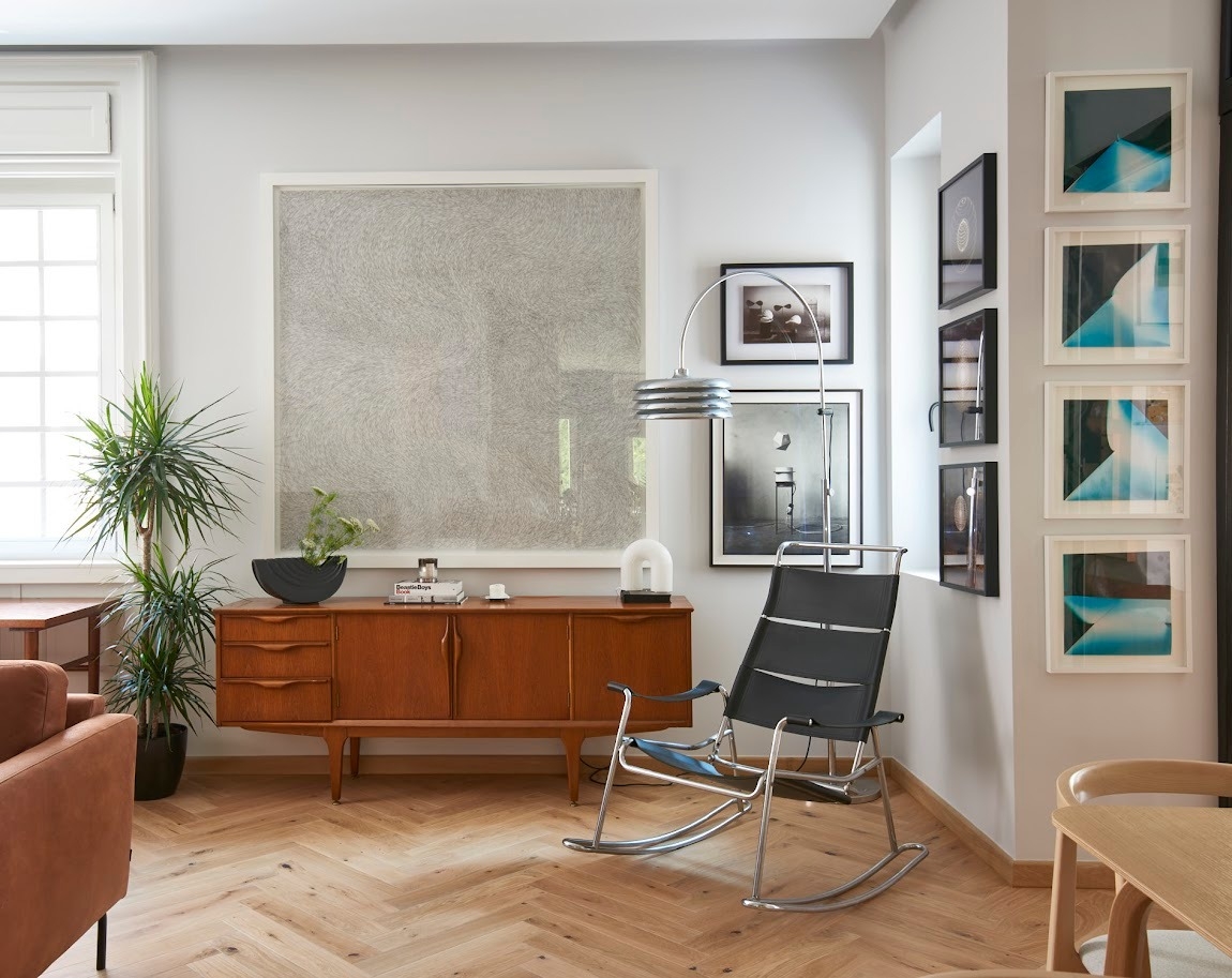 A 90 m² nettó alapterületű, nappali + 2 hálószobás ingatlan 2022-ben teljes körű felújításon esett át, amely a legapróbb részletekre is kiterjedt. A minőségi anyaghasználat és az átgondolt belsőépítészeti megoldások eredményeként egy időtálló, elegáns otthon született – nem véletlenül szerepelt az Elle Decoration 2022. szeptember–októberi számában.