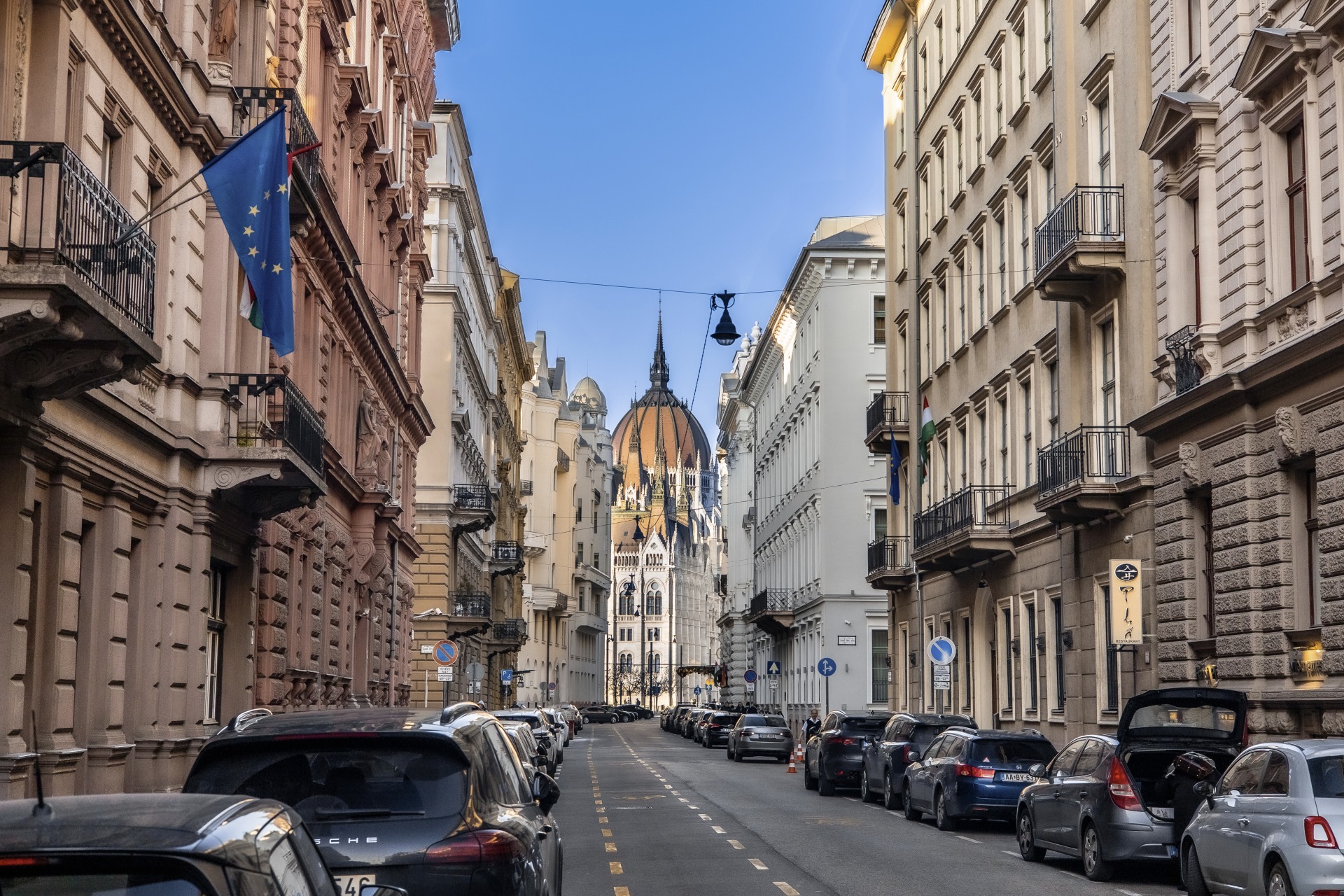 A lokáció valóban páratlan: a ház elé kilépve szemben a Parlament, jobbra a Szabadság tér, balra a Mátyás-templom és a Duna, míg a ház mögött a Széchenyi tér található. Ritka adottság, amely a belvárosi élet legmagasabb színvonalát kínálja.