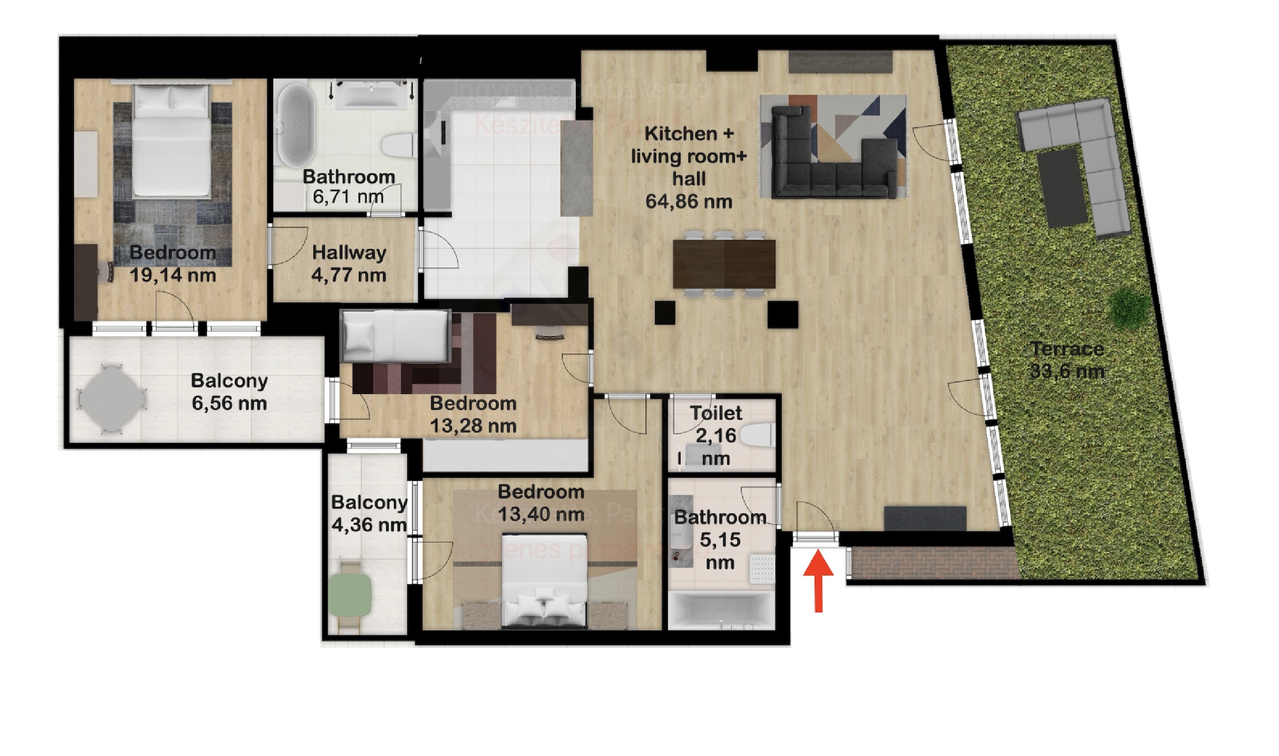 LUXUS PENTHOUSE APARTMAN – HATALMAS TERASSZAL, 3 HÁLÓVAL, TELJES BERENDEZÉSSEL