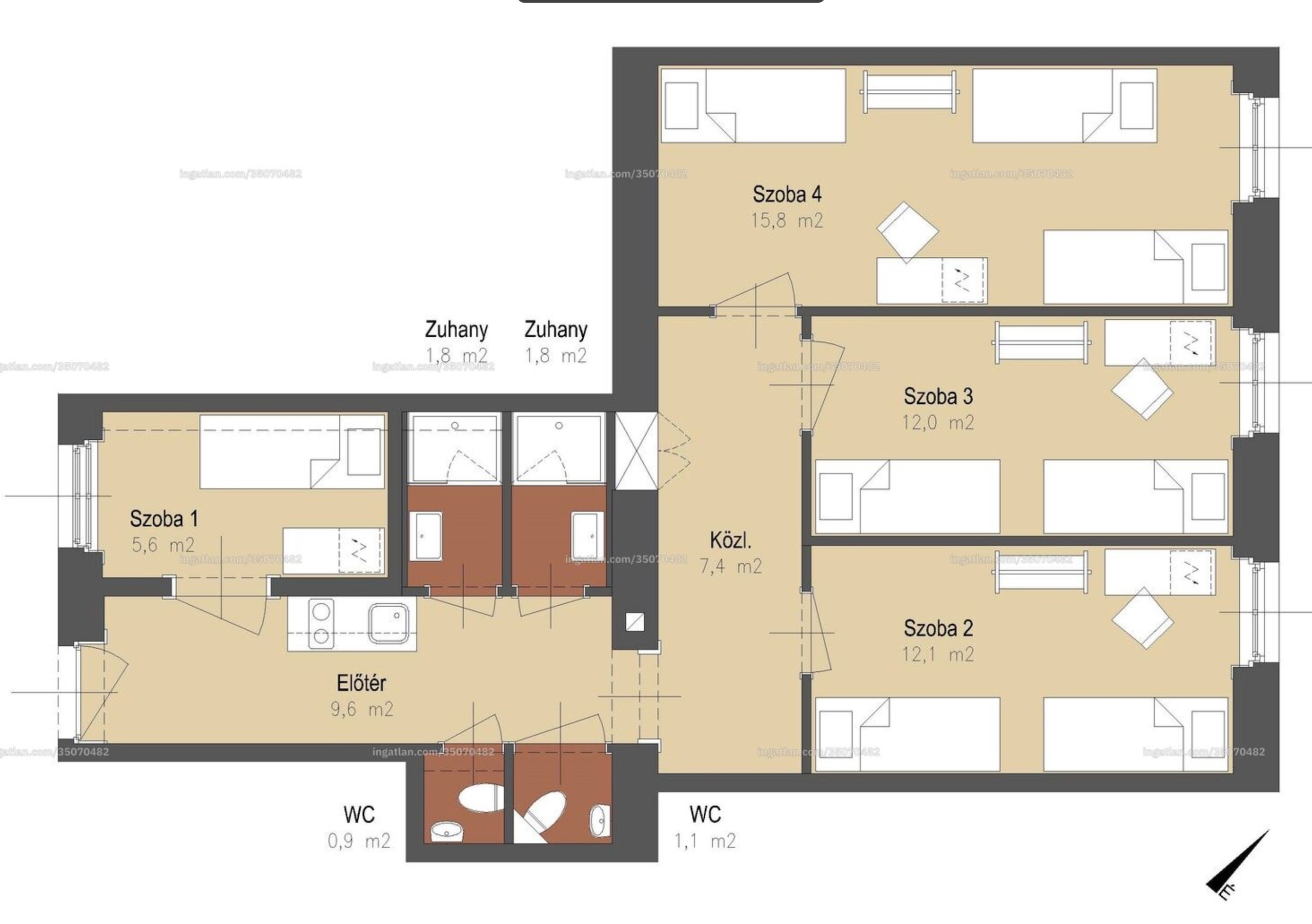 - 3 teljes értékű hálószoba + 1 félszoba