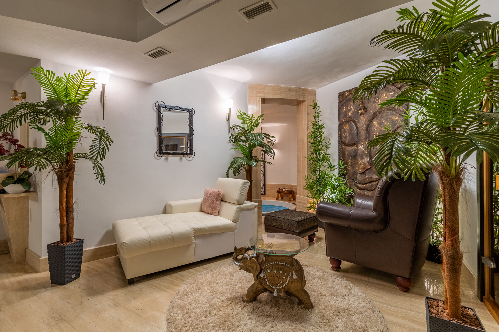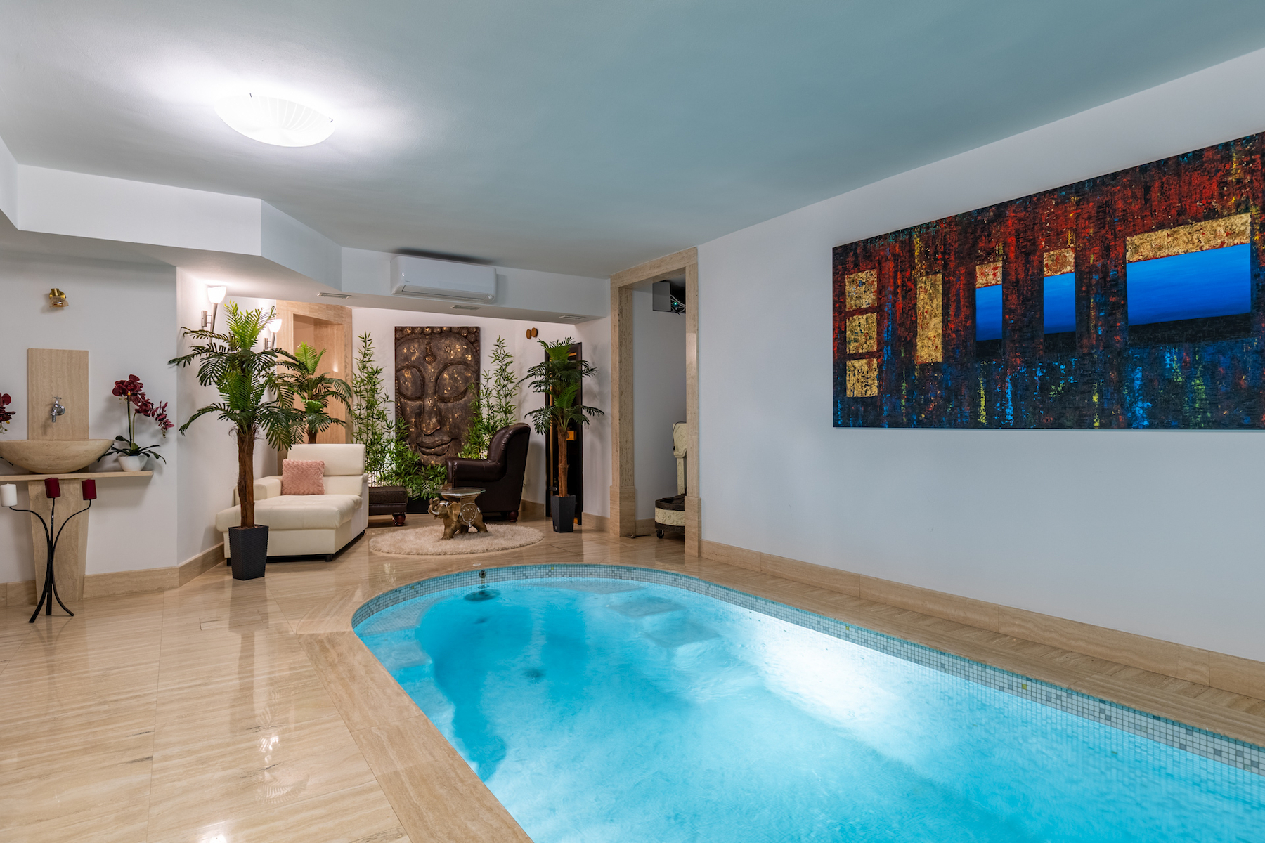 A ház egyik különlegessége a saját wellness rész, amelyben medence, jacuzzi és szauna is helyet kapott, valamint a kertben egy kültéri medence is rendelkezésre áll.